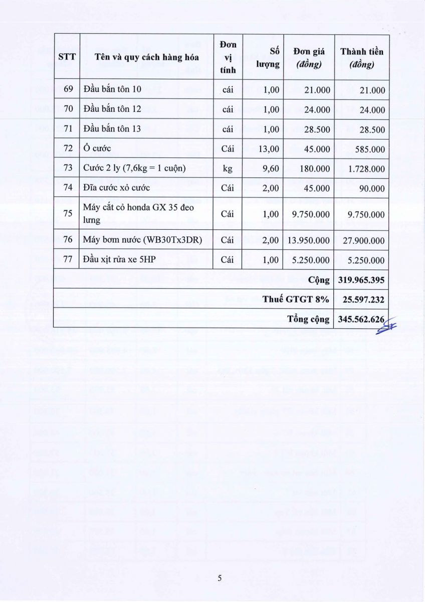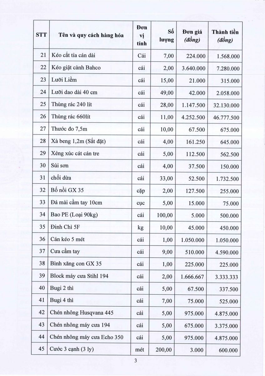 Quyết định Về việc phê duyệt kết quả lựa chọn nhà thầu gói thầu Hàng hóa – công cụ dụng cụ phục vụ hoạt động sản xuất kinh doanh của Công ty năm 2026