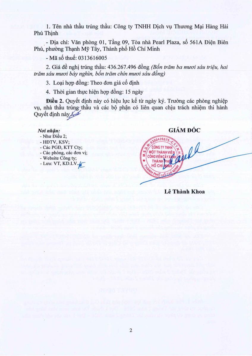 Quyết định số 833/QĐ-CVCX ngày 31 tháng 3 năm 2026 về việc phê duyệt kết quả lựa chọn nhà thầu gói thầu Phi tư vấn - Thuê dịch vụ Chăm sóc, bảo dưỡng cây xanh gói thầu Chăm sóc, bảo dưỡng mảng xanh Khu vực 4,5 thuộc công trình Bảo trì công trình hạ tầng và tiện ích công cộng tại Khu Công nghệ cao Thành phố Hồ Chí Minh