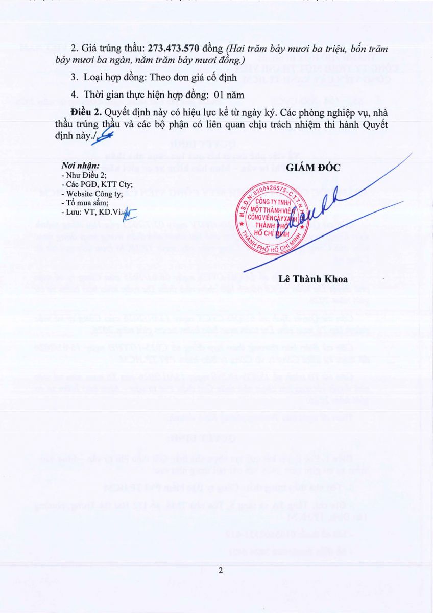 Quyết định Về việc phê duyệt kết quả lựa chọn nhà thầu gói thầu Hàng hóa – vật tư phục vụ hoạt động sản xuất kinh doanh của Công ty năm 2026