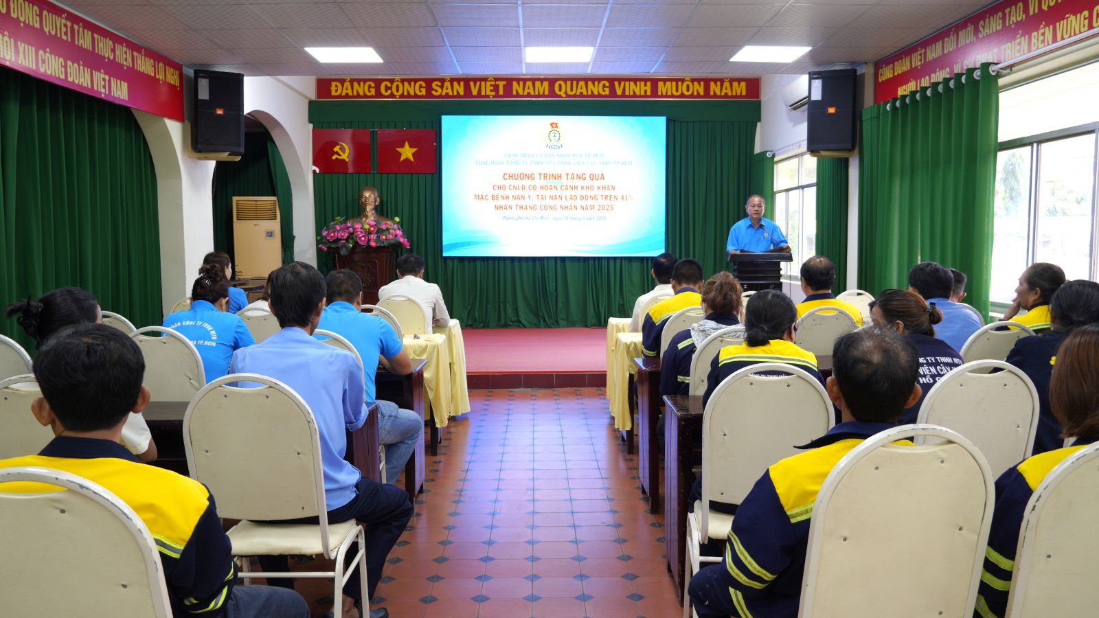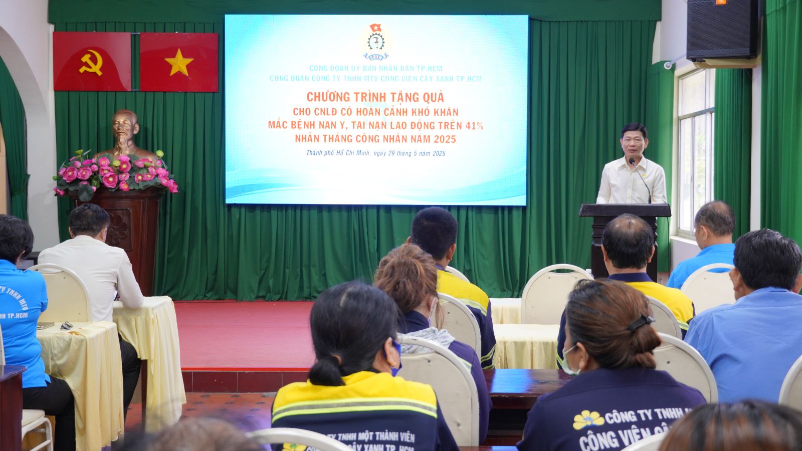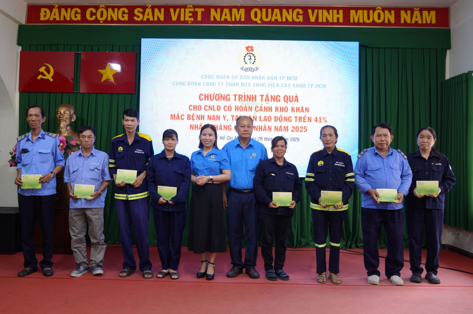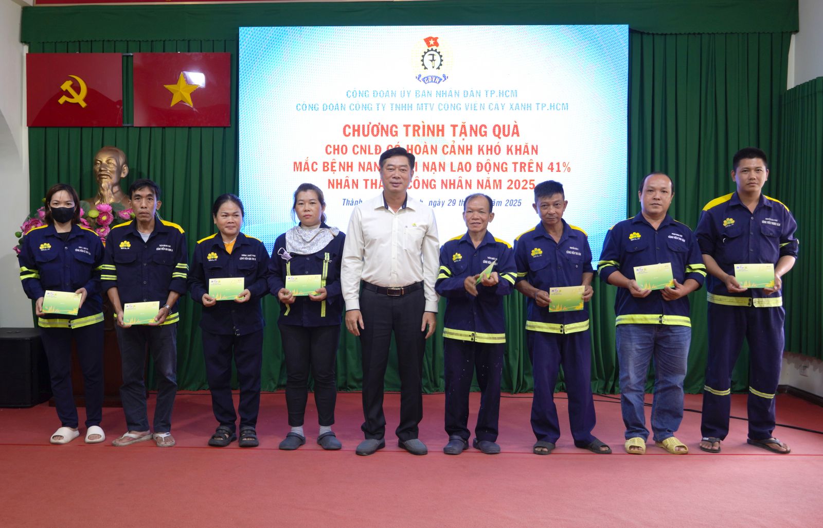 CVCX – Ngày 29/5/2025 Ban Chấp hành Công đoàn Công ty TNHH MTV Công viên cây xanh TP. HCM (Công đoàn Công ty) tổ chức chương trình tặng quà cho Công nhân lao động mắc bệnh nan y, tai nạn lao động trên 41% tại Hội trường Công ty.