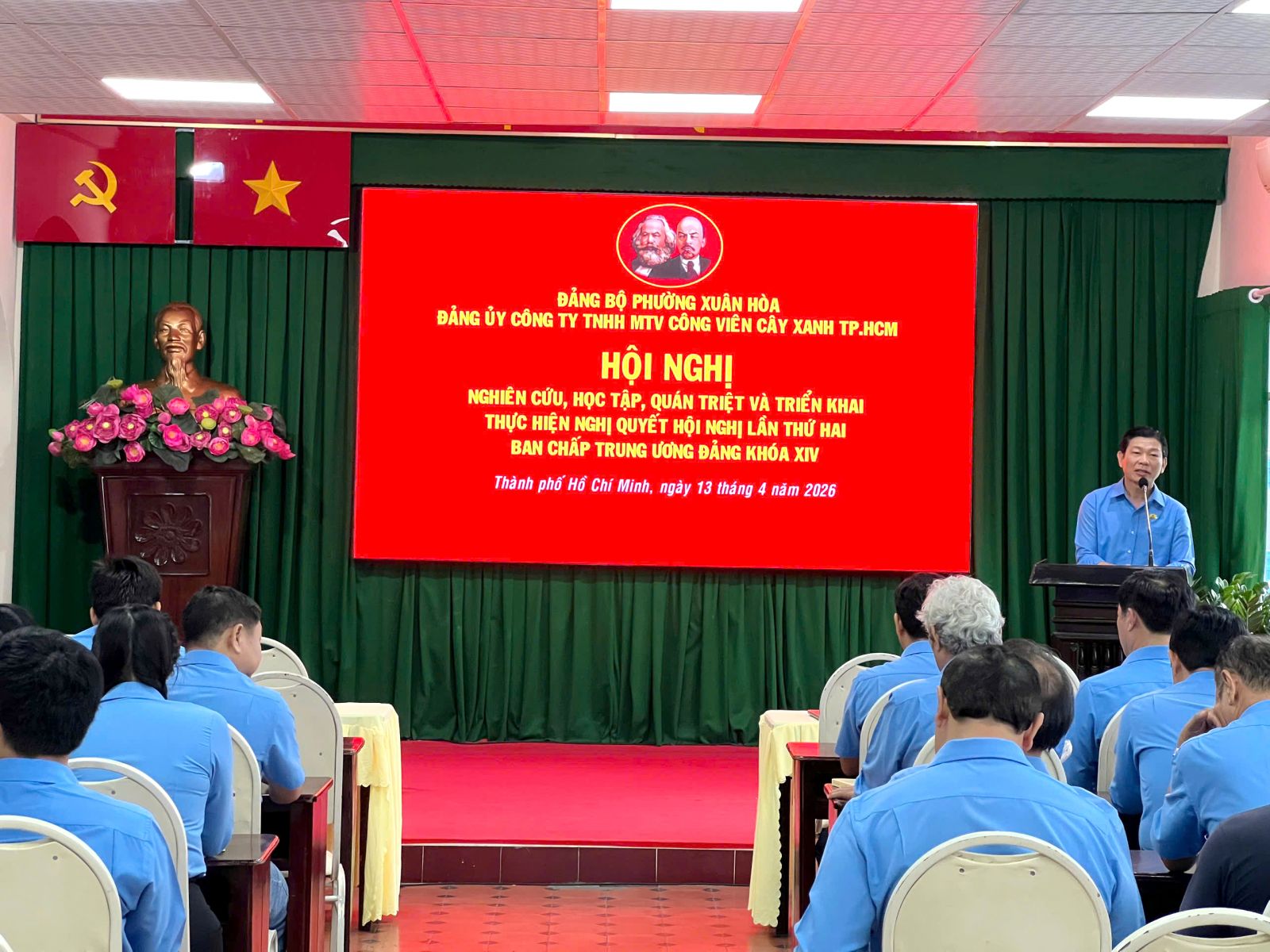 CVCX – Ngày 13/4/2026, Đảng ủy Công ty TNHH MTV Công viên cây xanh TP.HCM đã tổ chức điểm cầu theo dõi truyền hình trực tiếp Hội nghị nghiên cứu, học tập, quán triệt và triển khai thực hiện Nghị quyết Hội nghị lần thứ hai của Trung ương Đảng khóa XIV.