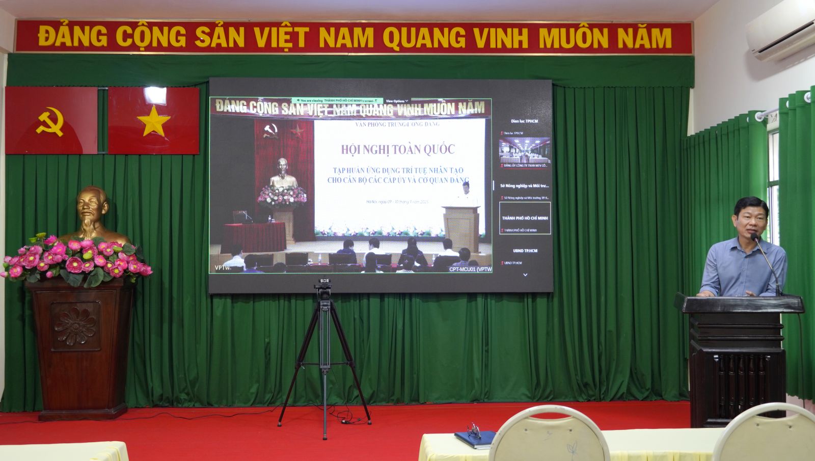 Đồng chí Trần Chí Cường – Bí thư Đảng ủy, Chủ tịch Hội đồng thành viên Công ty phát biểu và phổ biến tập huấn ứng dụng trí tuệ nhân tạo tại Hội nghị