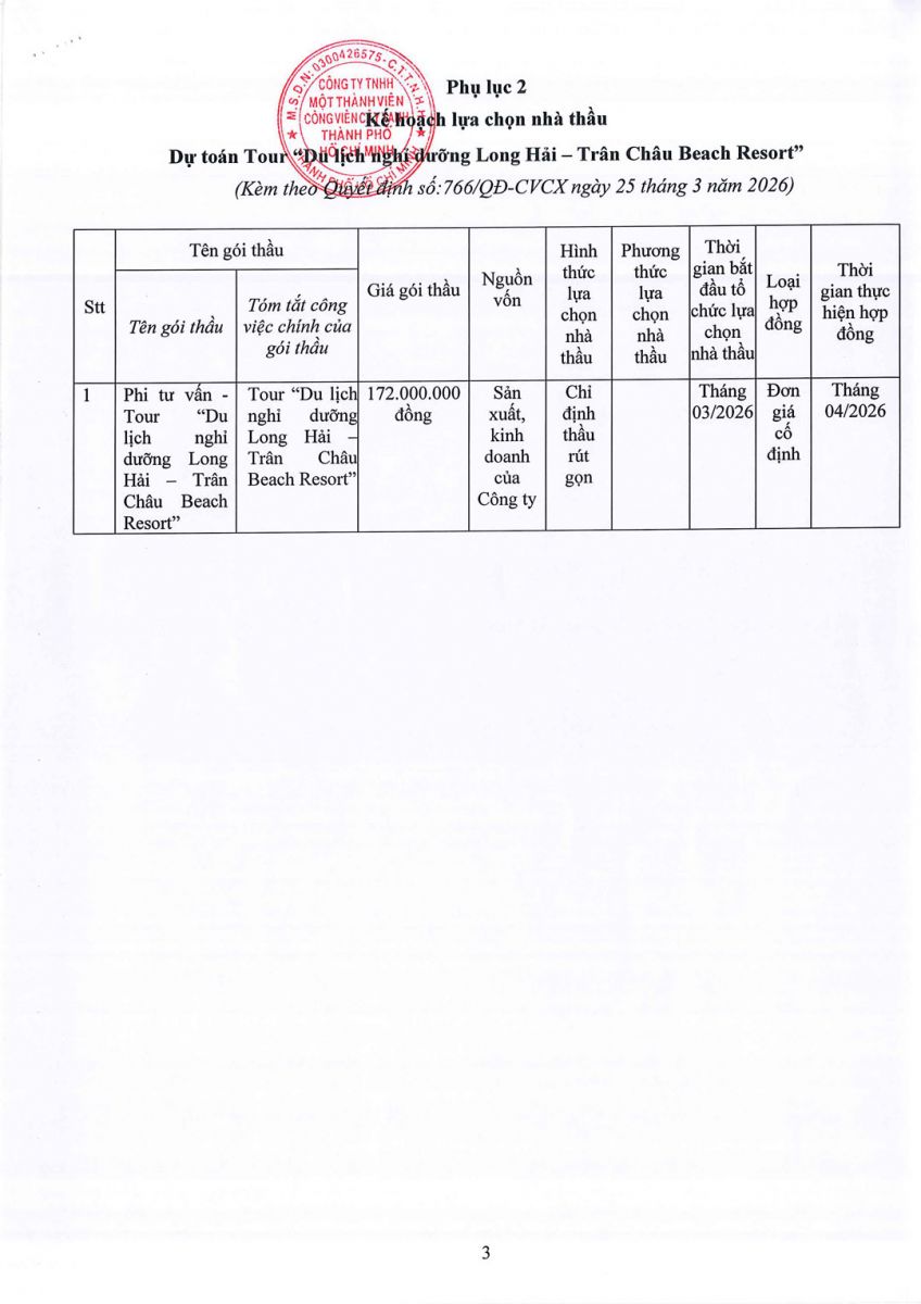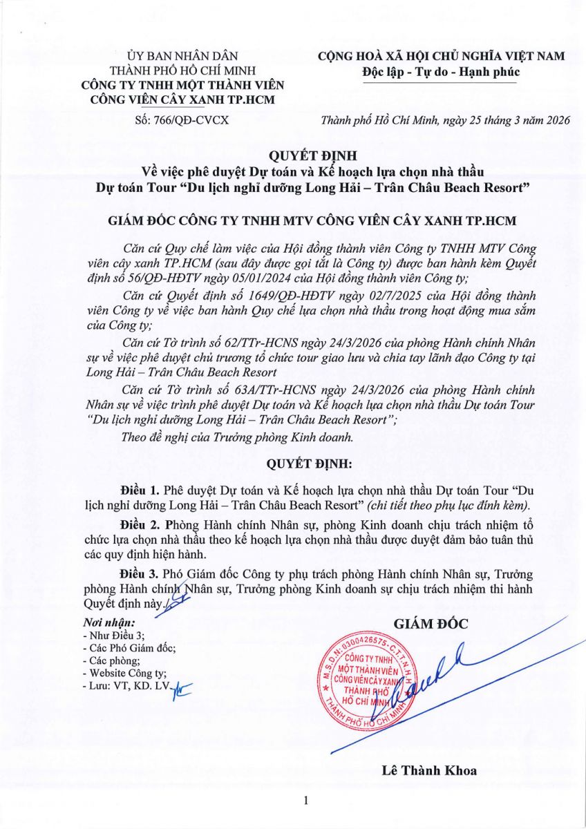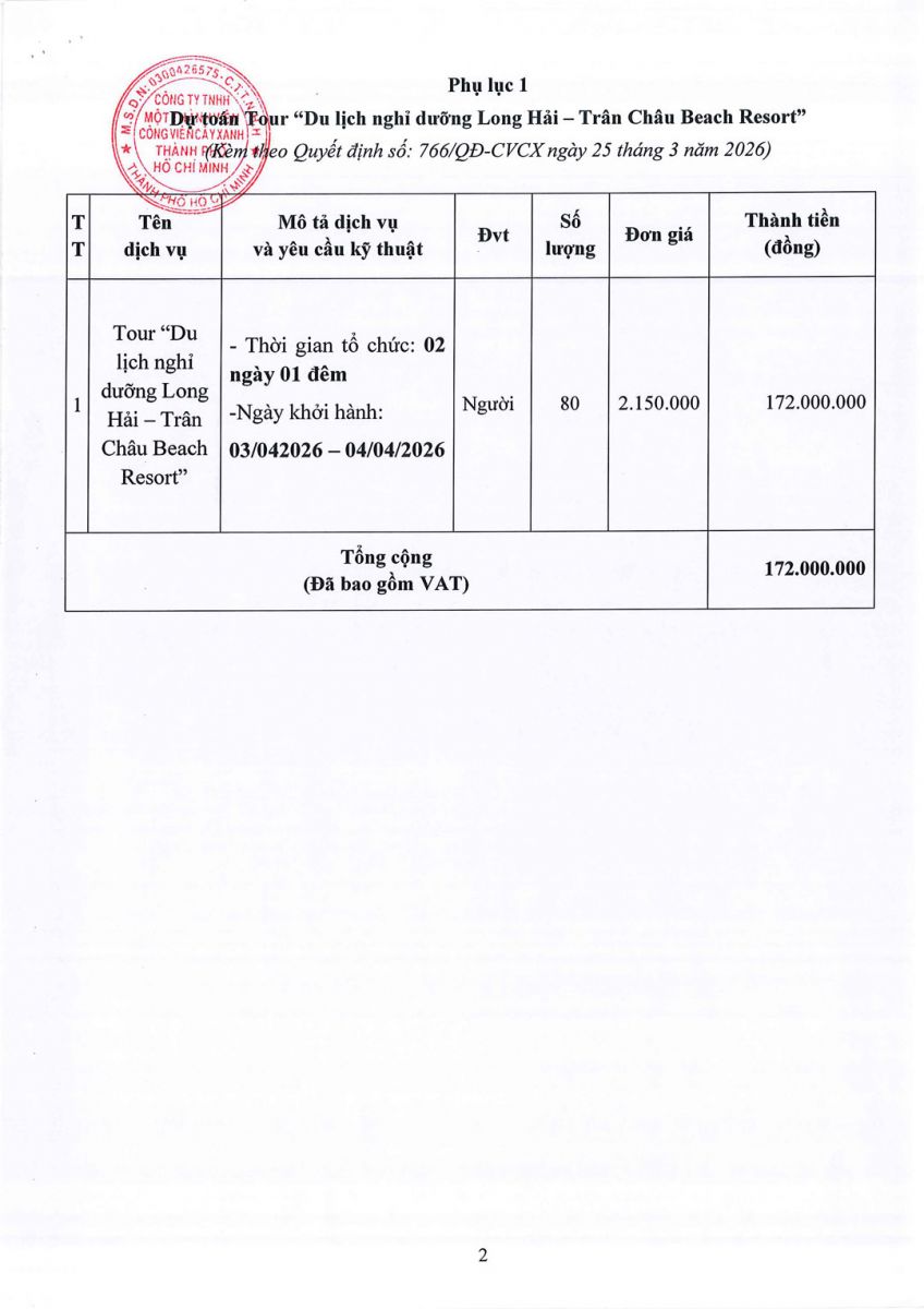 QUYẾT ĐỊNH Về việc phê duyệt Dự toán và Kế hoạch lựa chọn nhà thầu Dự toán Tour “Du lịch nghỉ dưỡng Long Hải – Trân Châu Beach Resort”
