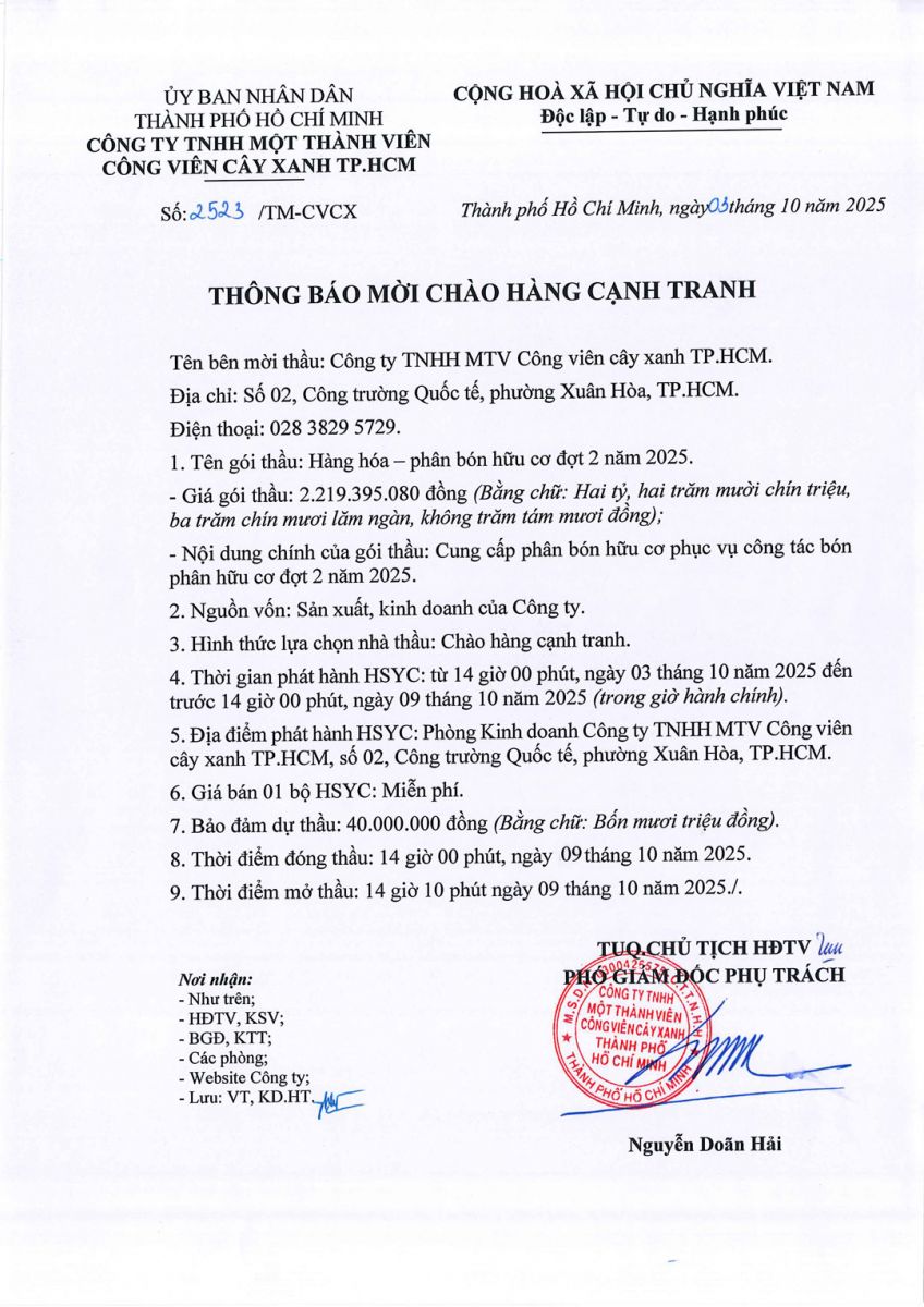 Thông báo mời chào hàng cạnh tranh